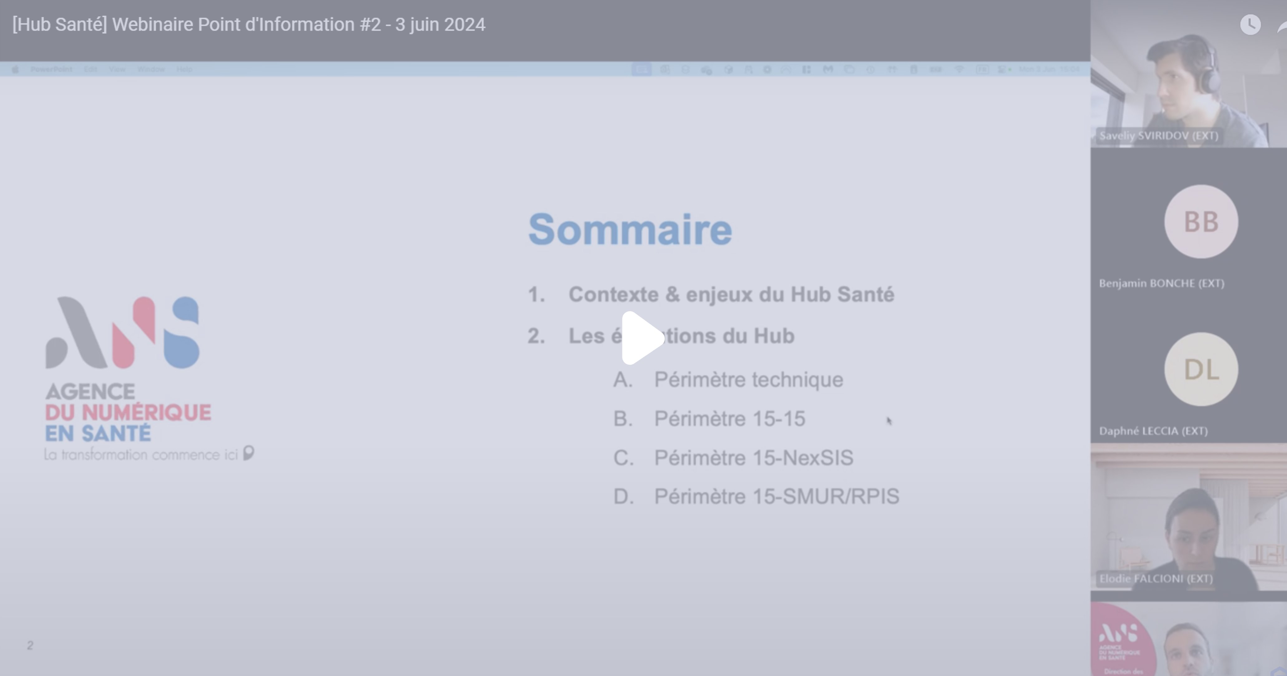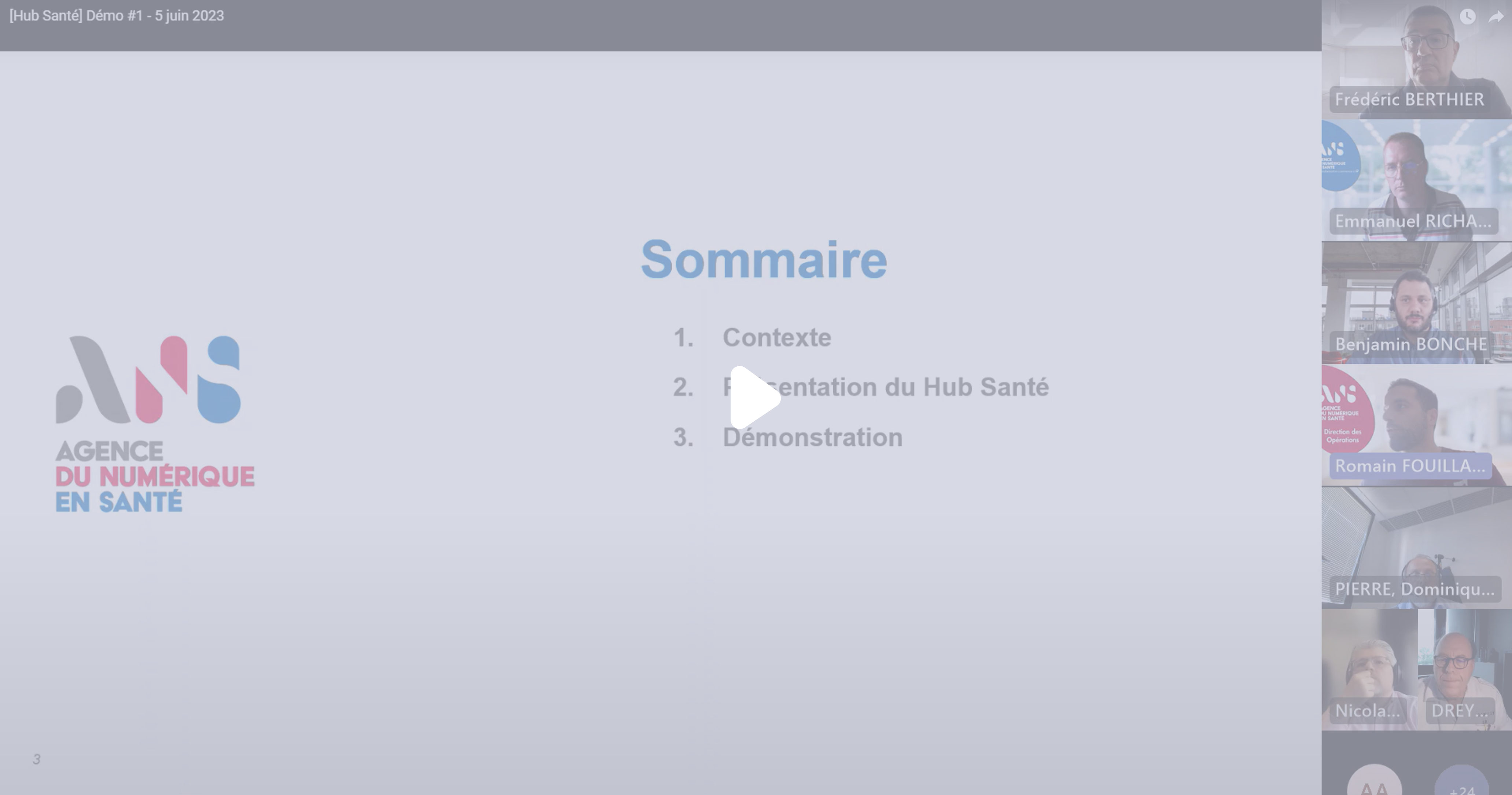 Principalement déstinée aux équipes internes du programme SI-SAMU ainsi qu'à nos partenaires métiers et ARS, cette première démonstration du Hub Santé est constituée d'une présentation globale du projet et d'une démonstration technique de la plateforme.
